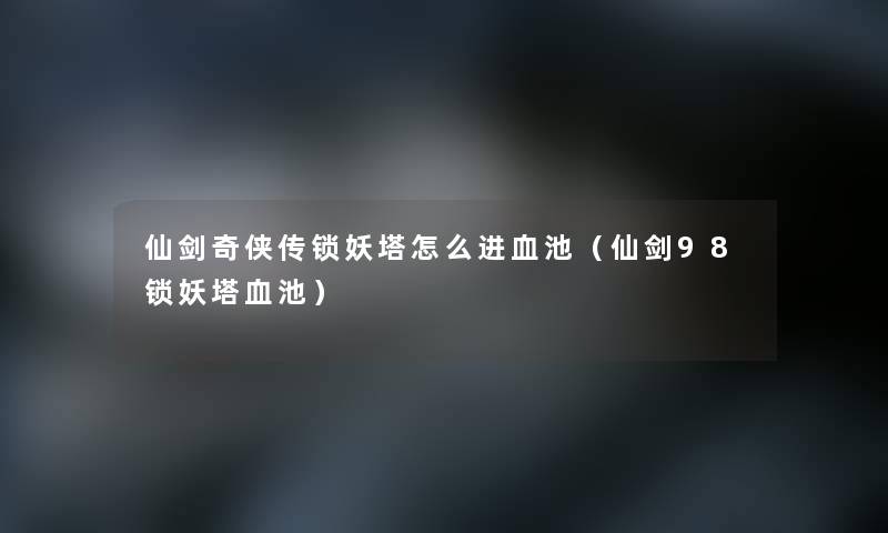 这些就是关于《仙剑奇侠传之锁妖塔》中如何进入血池的故事。我想大家喜欢这个分享,也期待大家能够一起探索更多的仙剑世界的奇迹!