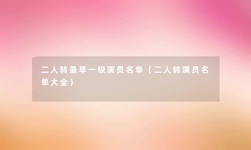 大家好,我是二人转达人小七,今天给大家介绍一下二人转早一级演员名单。不知道大家是否对二人转有所了解呢?二人转是中国传统戏曲中的一种形式,以幽默搞笑的对话和表演为特色,深受观众喜爱。