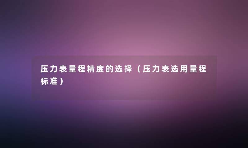 关于压力表选用量程标准的,我还想和大家分享一些我写的。是《压力表量程精度的选择与应用》一文,该文详细介绍了压力表量程精度的选择原则和应用场景。还有一篇名为《如何正确选择压力表量程》的,该文从实际应用出发,给出了一些建议和事项。