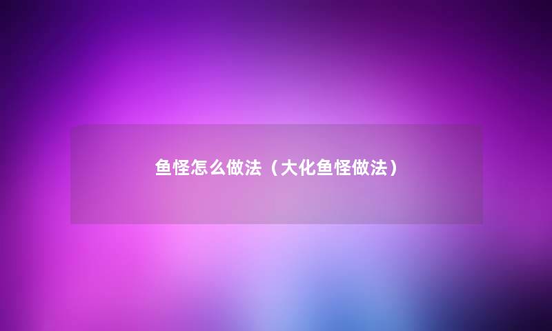 鱼怪怎么做法(大化鱼怪做法)