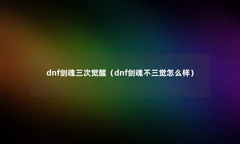 dnf剑魂三次觉醒(dnf剑魂不三觉怎么样)